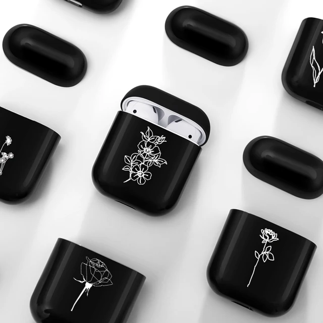 Special Price Cartoon Cute Black Air Pods Case For Apple airpods Case Luxury Lines Flower Bluetooth Earphone Case with Free Shipping Worldwide!
