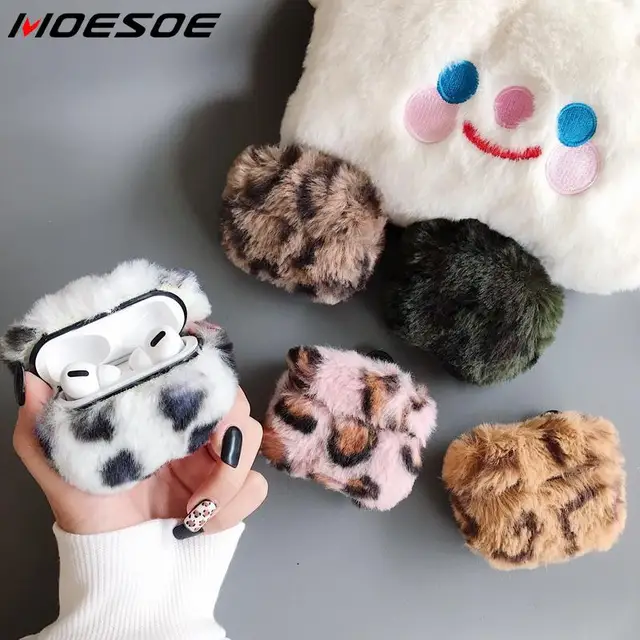 Luxury Fluffy Plush Earphone Case For AirPods Pro Warm Protective Leopard Texture Hard Case Cover For Apple Air Pods 3