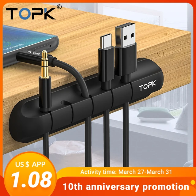 TOPK USB Cable Organizer Protector Office Cable Management Holder Winder Clip for Headphone Mouse Earphone Wire Keyboard Cord