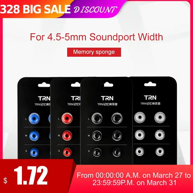 TRN 3 Pairs 1sets L/M/S Memory Foam Noise Isolating Earphone EarTips 3Pairs for 5MM InEar Bluetooth Earphone Earbud V90 X6 V80